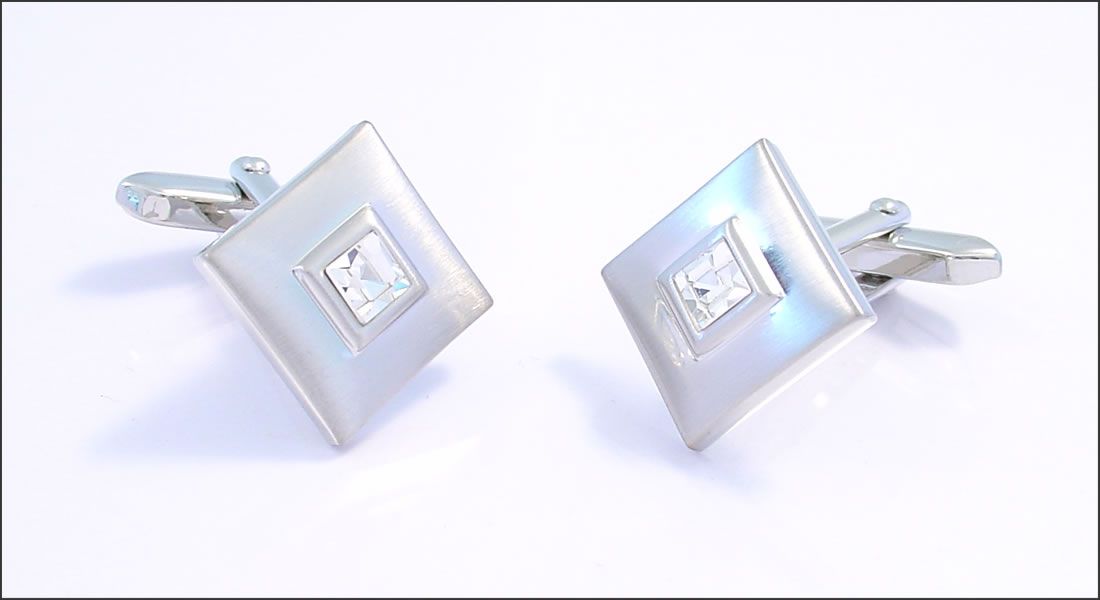 Bouton de manchette carré argenté incrusté d'un cristal transparent