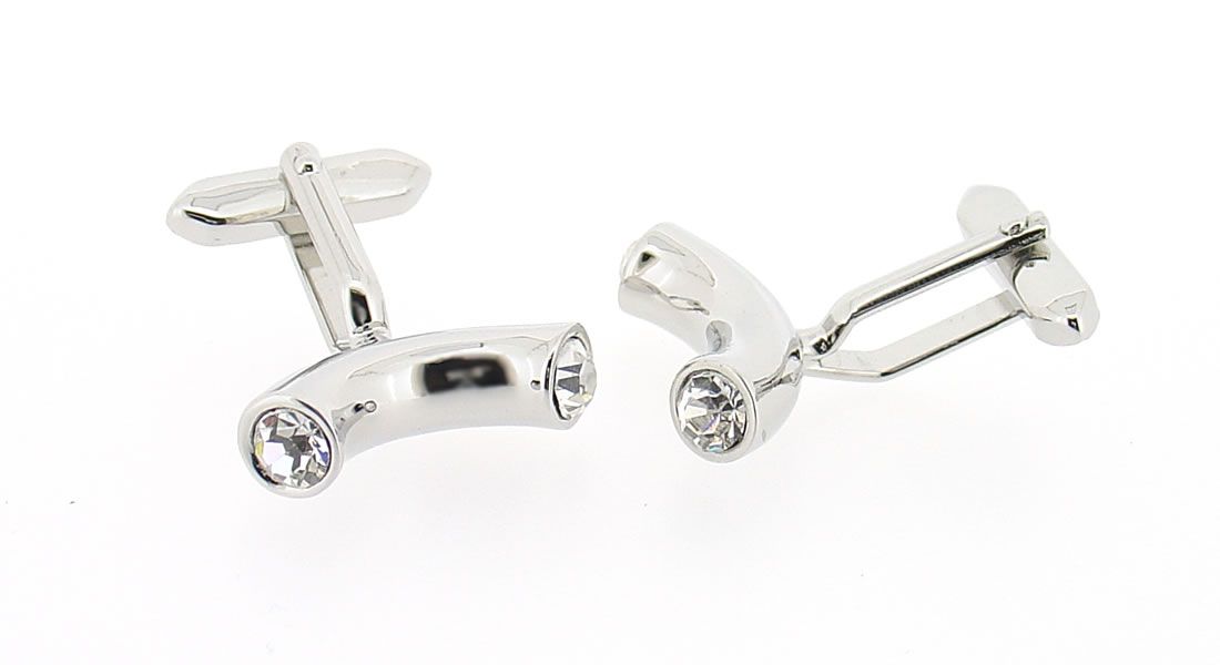 Boutons de manchette barre arrondie avec deux cristaux blancs
