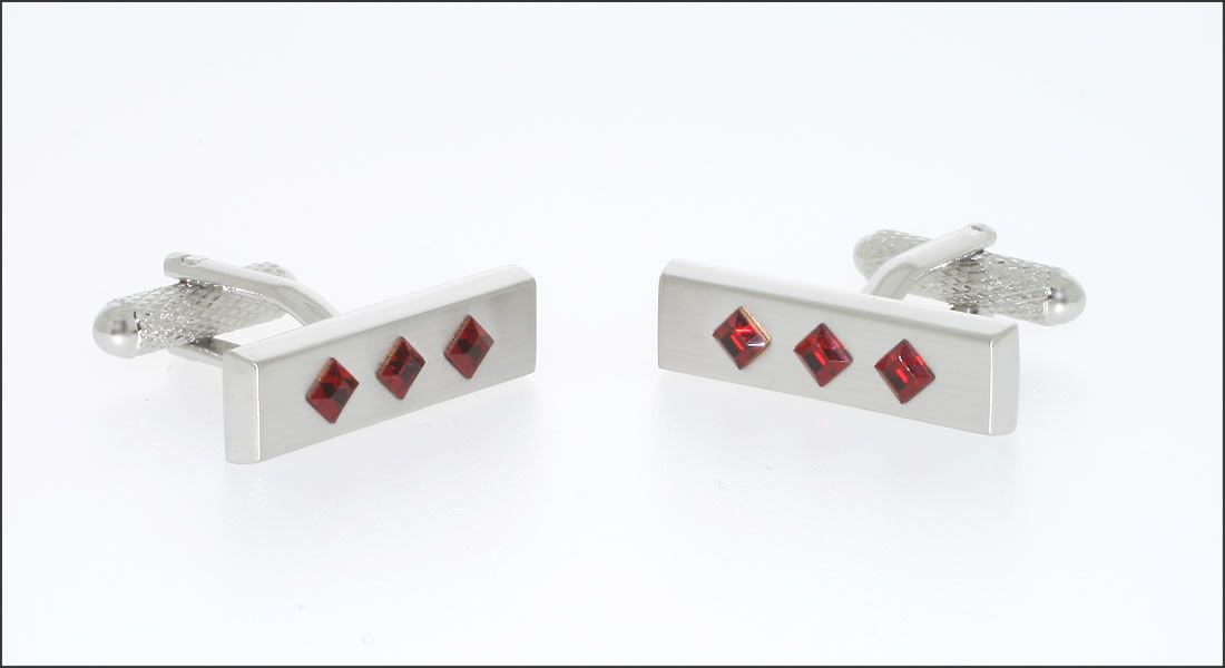 Boutons de manchette rectangle incrusté de 3 cristaux de Siam