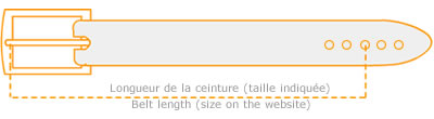 Votre taille de ceinture correspond également à la distance allant du trou central à l'extrémité de la boucle (à l'endroit ou l'ardillon repose sur la boucle).